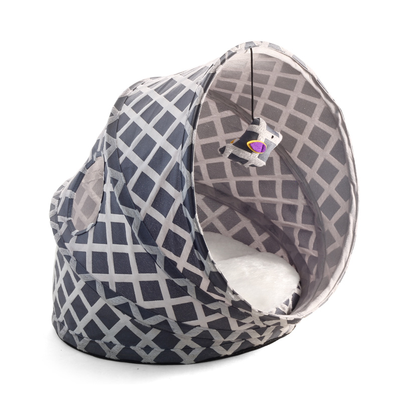 Оригинальная лежанка для усатых-полосатых - мягкое и уютное спальное место, где можно не только отдыхать, но и наблюдать за всем происходящим вокруг. Туннель выполнен из натурального материала и удобно складывается за счет эргономичного корпуса. Внутри имеется мягкая съемная подушка, а подвешенная игрушка станет дополнительным элементом для игры.