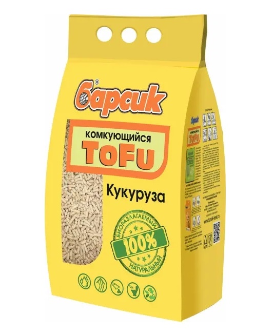 Гигиенический наполнитель Барсик "ТОФУ" Кукурузный" – высококачественный натуральный комкующийся наполнитель для кошачьего туалета на основе растительных волокон, с легким приятным ароматом кукурузы.Уникальный экологически чистый и безопасный продукт, БИО-разлагаемый. КОМПОСТИРУЕМЫЙ. Эффективно впитывает влагу, образуя плотный компактный эластичный комок, который легко удалить из общей массы наполнителя. Надолго блокирует неприятный запах. Разрешена утилизация малыми порциями в УНИТАЗ или путем компостирования. Благодаря практичной фракции гранул, не прилипает к шерсти и лапам питомца, не "разносится" по комнате. Экономичен в использовании, при правильном использовании, одной упаковки хватит на длительный срок.Первый ТОФУ-наполнитель высокого качества, произведенный в РОССИИ!