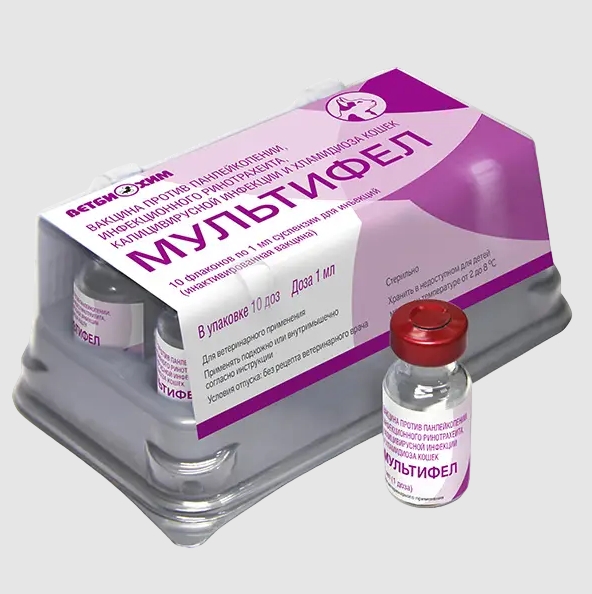 Вакцина предназначена для профилактики панлейкопении, ринотрахеита, калицивирусной инфекции и хламидиоза домашних кошек и диких животных семейства кошачьих. Вакцинации не подлежат клинически больные и/или ослабленные животные. Перед применением в холодное время года вакцину подогревают до температуры 36-38°С, в процессе применения флаконы (ампулы) с вакциной тщательно взбалтывают до образования однородной взвеси, исключая выпадения компонентов вакцины в осадок. Вакцину вводят внутримышечно котятам в 8-12-недельном возрасте и повторно через 21-28 суток в дозе 1,0 мл независимо от массы тела и породы кошек. Ревакцинацию проводят в возрасте 10-12 мес. Взрослых кошек вакцинируют ежегодно. Вакцинацию проводят с соблюдением правил асептики, для инъекции используют только стерильные материалы и инструменты. Для каждого животного используют отдельную иглу. Симптомов проявления панлейкопении, ринотрахеита, калицивирусной инфекции и хламидиоза или других патологических признаков при передозировке вакцины не выявлено. Особенностей поствакцинальной реакции при первичной, повторной вакцинации и ревакцинации не установлено. Следует избегать нарушений схемы вакцинации, поскольку это может привести к снижению эффективности иммунопрофилактики панлейкопении, ринотрахеита, калицивирусной инфекции и хламидиоза. В случае пропуска повторного введения вакцины необходимо провести иммунизацию как можно скорее. При применении вакцины в соответствии с настоящей инструкцией побочных явлении и осложнений, как правило, не отмечается. На месте инъекции возможно появление быстро исчезающей припухлости, В случае проявления у отдельных животных аллергических реакций на введение вакцины для их снятия необходимо применять антигистаминные препараты. Допускается одновременное применение вакцины Мультифел-4 с вакциной против вирусной лейкемии «Леоминор». Вакцину не применяют в одном шприце с другими биопрепаратами и лекарственными средствами. Сроки возможного использования продукции животного происхождения после введения вакцины Мультифел-4 не устанавливаются.