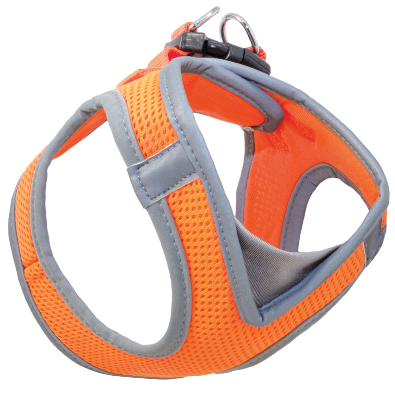 Мягкая и удобная шлейка-жилетка - функциональный аксессуар для четвероногих модников. Яркий оранжевый цвет и окантовка из светоотражающего материала делают питомца заметным не только в пасмурную погоду, но и в ночное время.