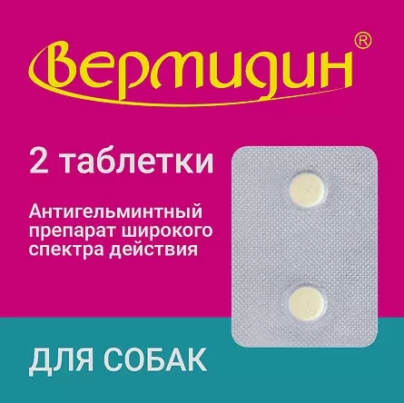 Вермидин – антигельминтный препарат в виде таблеток, предназначенный для лечения и профилактики нематодозов и цестодозов у собак. Препарат действует на все виды и стадии развития глистов.