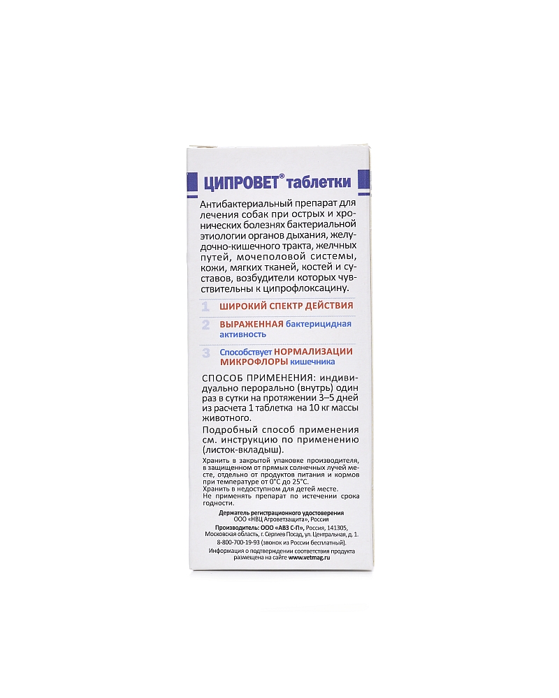 АВЗ Ципровет таблетки для собак средних и крупных пород, антибактериальный препарат